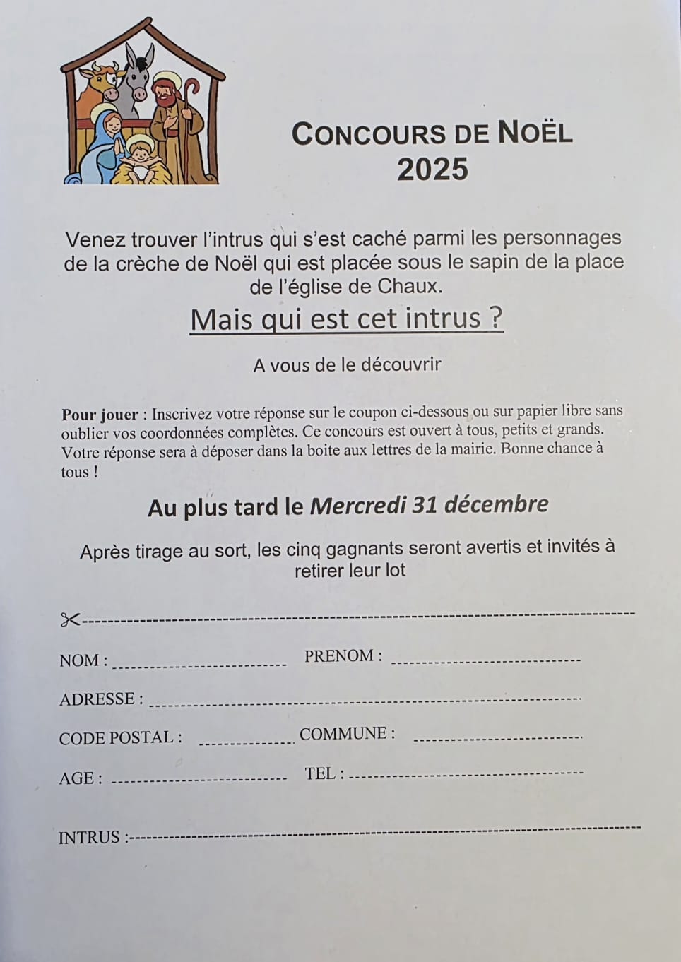 Venez découvrir cet intrus et tentez votre chance pour gagner un des cinq lots offerts par la Mairie